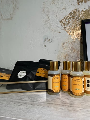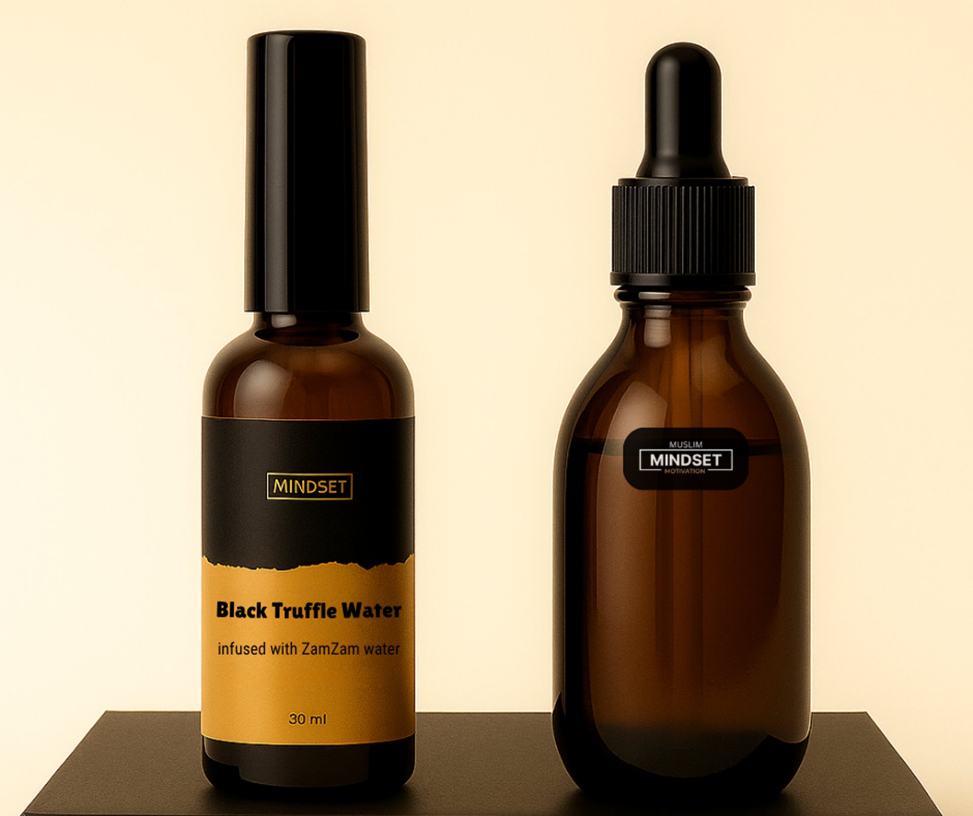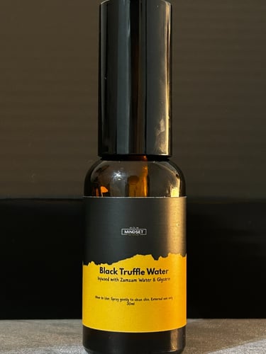30 ml Black Truffle Water infused with Zam Zam Water – A rare, nourishing formula known for its powerful healing and anti-inflammatory properties. Used traditionally for eye ailments, this blend helps soothe irritation, improve vision strength, and promotes natural brightness in the eyes.