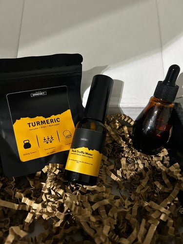 30 ml Black Truffle Water infused with Zam Zam Water – A rare, nourishing formula known for its powerful healing and anti-inflammatory properties. Used traditionally for eye ailments, this blend helps soothe irritation, improve vision strength, and promotes natural brightness in the eyes.